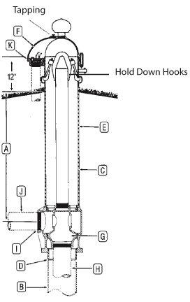 HOLD-DOWN — Supplied with each unit. Hold-down pipe also serves as lift-out pipe for installation and servicing.